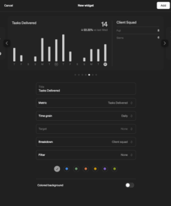 Teams also unlock addition widget visualisation options that succinctly display how a metric is performing. We’ve got included them all here, but you have the power to include breakdowns by a dimension, filter or some comparison vs a target.