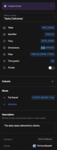 metricis perhaps more time consuming as it’s an extra step compared to some other BI tools. However, doing this properly upfront ensures focus and consideration has been given to whatmetricsare made available (as opposed to everything being there). So we think it’s a good feature.